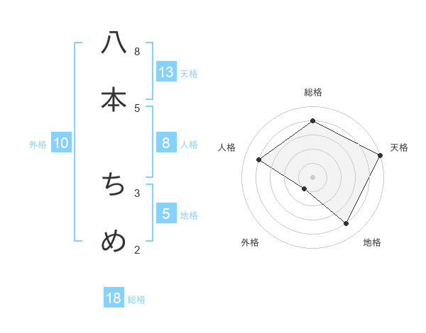 八本 ちめさんの天格は13画の5点!