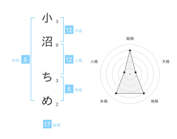 小沼 ちめさんの天格は12画の1点!