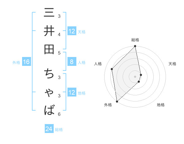 三井田 ちゃばさんを姓名の画数から五運を鑑定