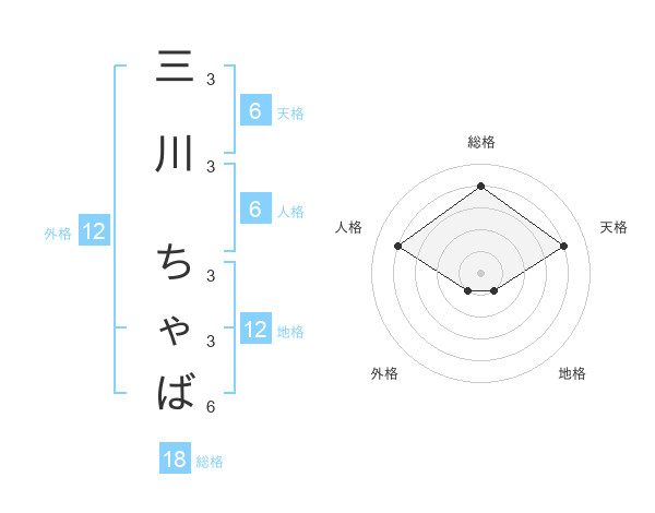 三川 ちゃばさんの総格は18画の4点