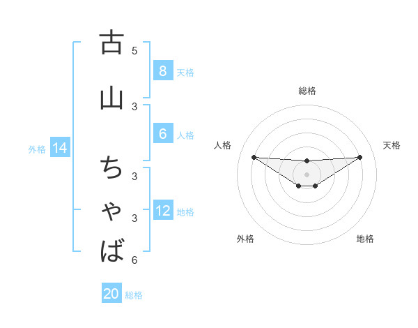 古山 ちゃばさんを姓名の画数から五運を鑑定