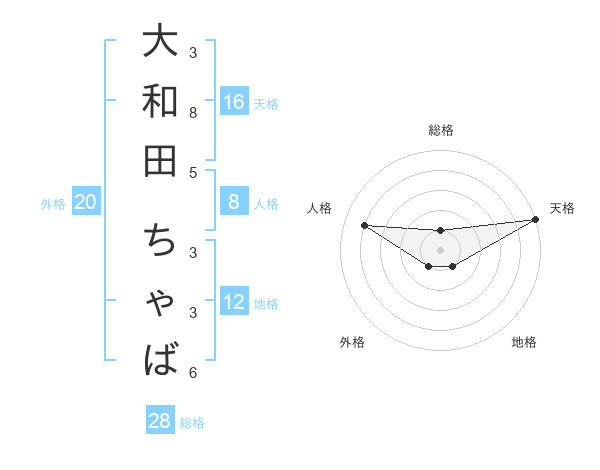 大和田 ちゃばさんを姓名の画数から五運を鑑定