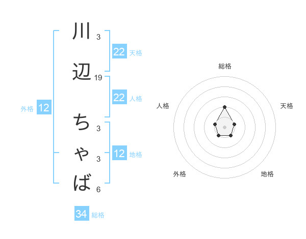 川辺 ちゃばさんを姓名の画数から五運を鑑定