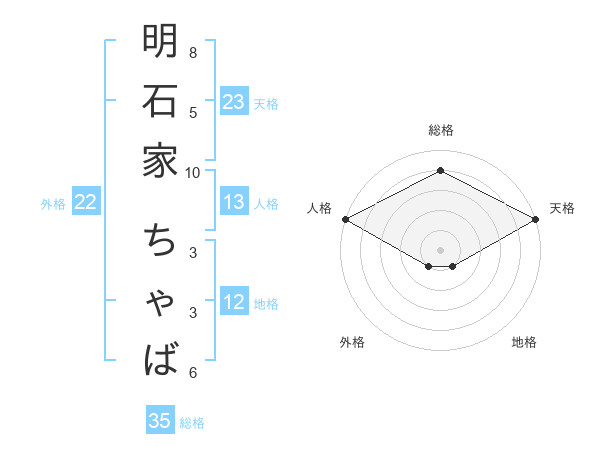 明石家 ちゃばさんを姓名の画数から五運を鑑定