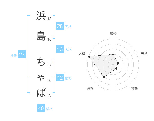 浜島 ちゃばさんを姓名の画数から五運を鑑定