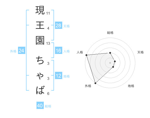 現王園 ちゃばさんを姓名の画数から五運を鑑定