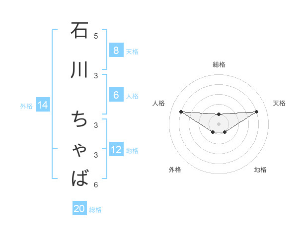 石川 ちゃばさんを姓名の画数から五運を鑑定
