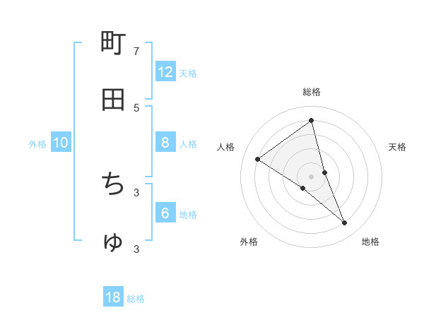 町田 ちゅさんの総格は18画の4点!