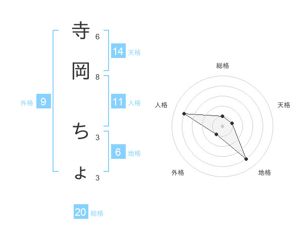 寺岡 ちょさんを姓名の画数から五運を鑑定