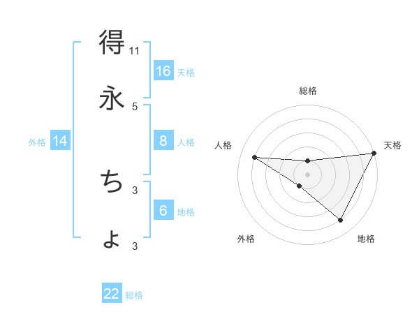 得永 ちょさんの天格は16画の5点!