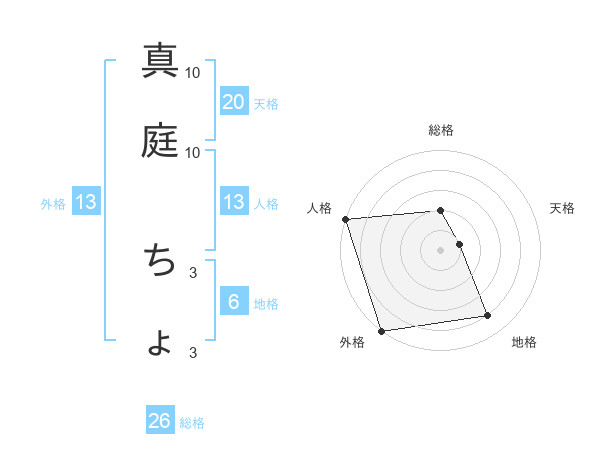 真庭 ちょさんの外格は13画の5点!