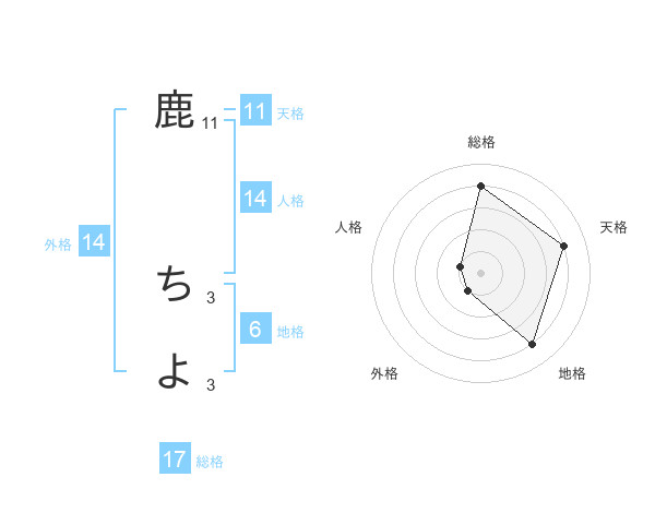 鹿 ちよさんの外格は14画の1点!