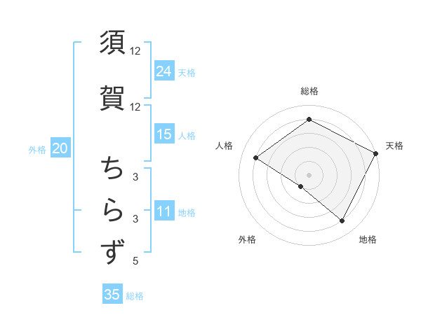 須賀 ちらずさんを姓名の画数から五運を鑑定