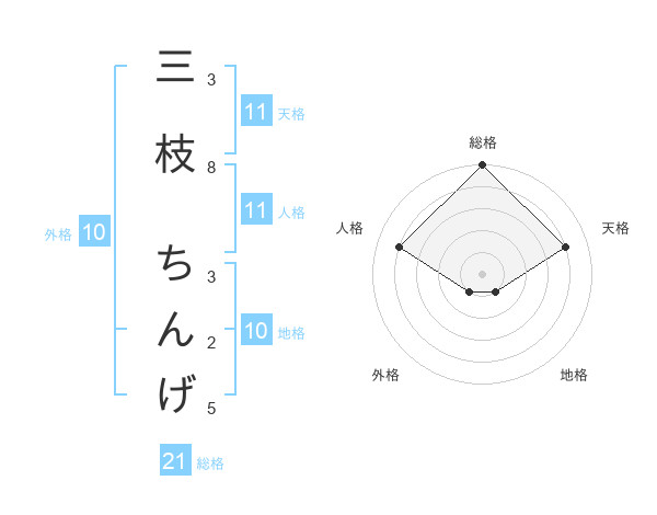 三枝 ちんげさんを姓名の画数から五運を鑑定