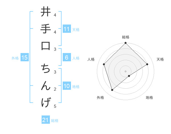 井手口 ちんげさんの総格は21画の5点!