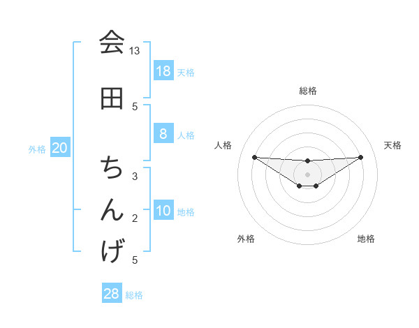 会田 ちんげさんの総格は28画の1点