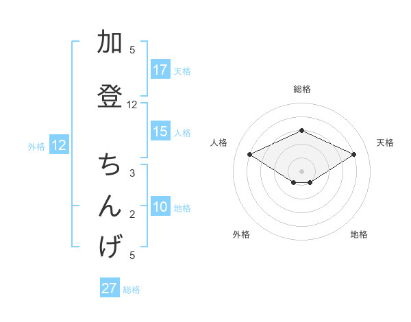 加登 ちんげさんを姓名の画数から五運を鑑定