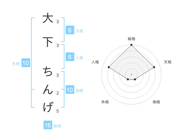 大下 ちんげさんの天格は6画の4点!