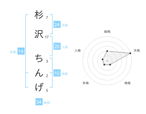 杉沢 ちんげさんの天格は24画の5点!