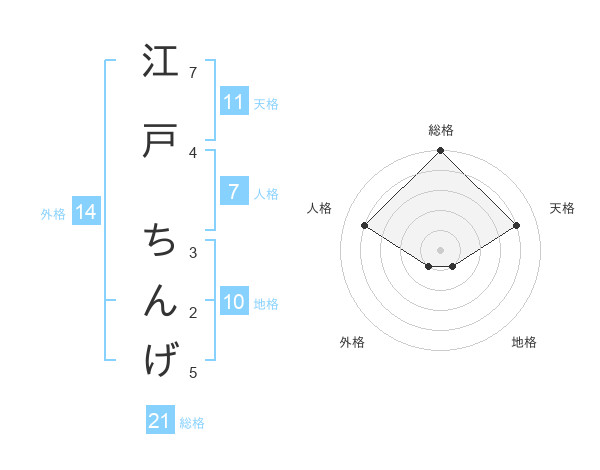江戸 ちんげさんを姓名の画数から五運を鑑定