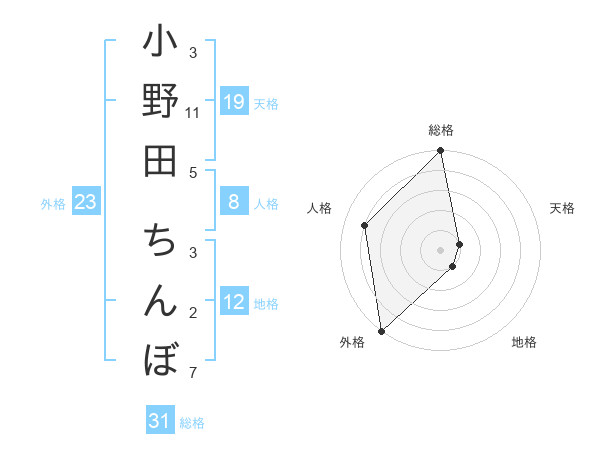 小野田 ちんぼさんの外格は23画の5点!