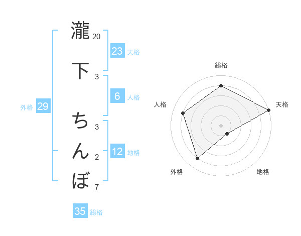 瀧下 ちんぼさんを姓名の画数から五運を鑑定