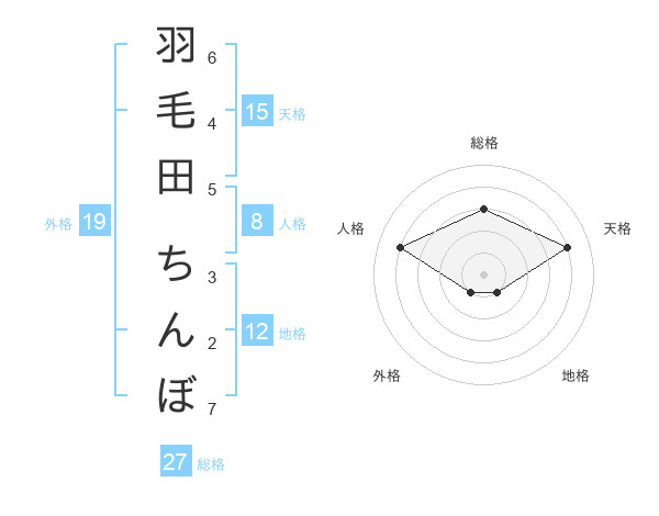 羽毛田 ちんぼさんを姓名の画数から五運を鑑定