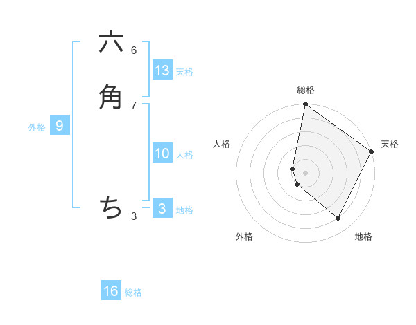 六角 ちさんの天格は13画の5点!