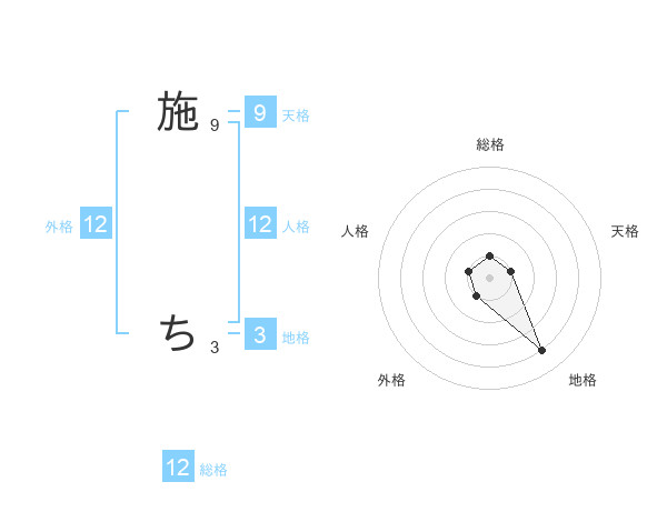 施 ちさんの総格は12画の1点!