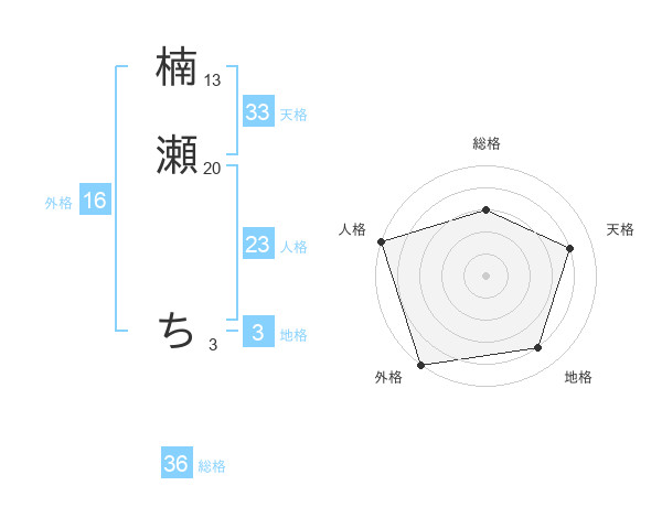 楠瀬 ちさんの天格は33画の4点!