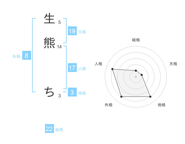 生熊 ちさんの総格は22画の1点!
