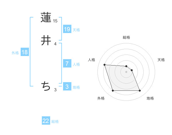 蓮井 ちさんの総格は22画の1点!
