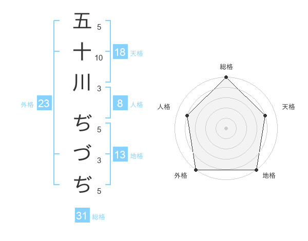 五十川 ぢづぢさんの外格は23画の5点!