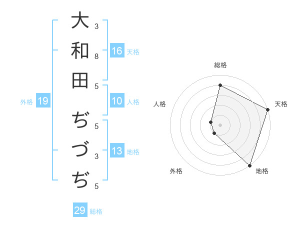 大和田 ぢづぢさんの天格は16画の5点!