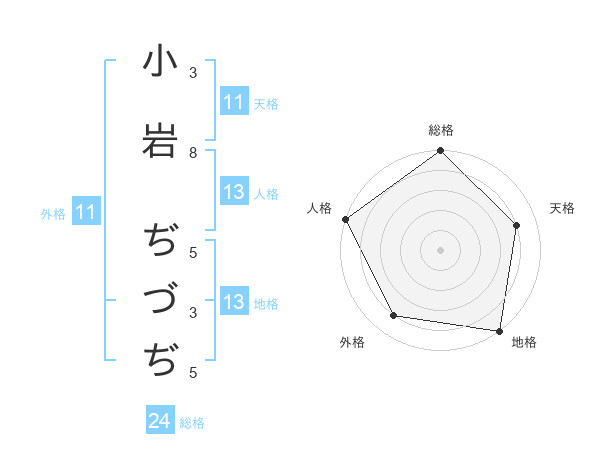 小岩 ぢづぢさんの総格は24画の5点!
