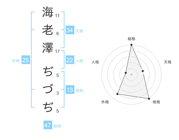 海老澤 ぢづぢさんを姓名の画数から五運を鑑定
