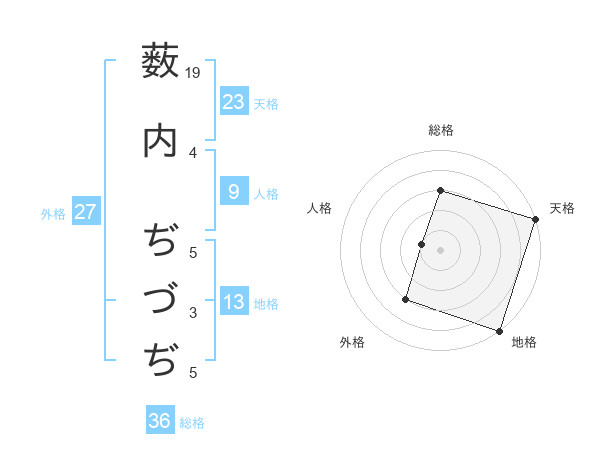 薮内 ぢづぢさんを姓名の画数から五運を鑑定