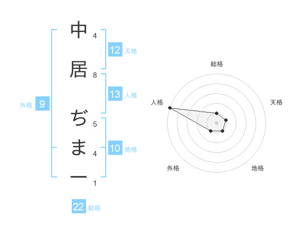 中居 ぢまーさんを姓名の画数から五運を鑑定