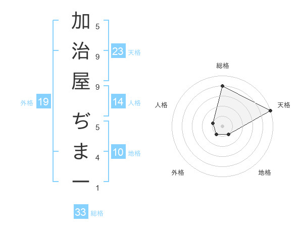 加治屋 ぢまーさんの天格は23画の5点