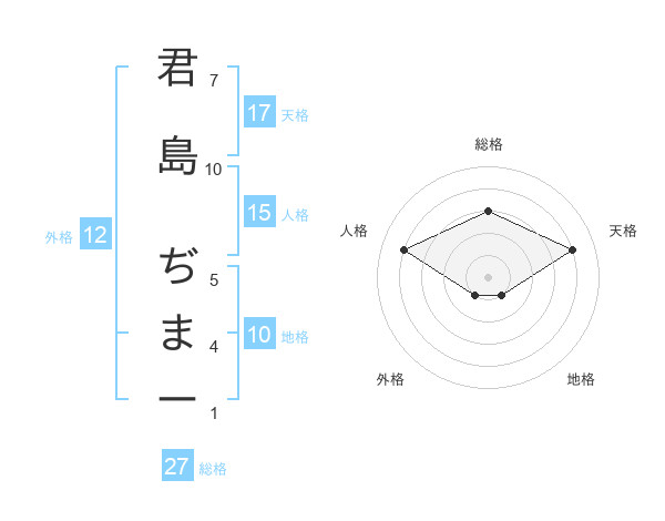 君島 ぢまーさんを姓名の画数から五運を鑑定