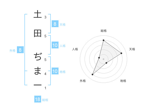 土田 ぢまーさんを姓名の画数から五運を鑑定