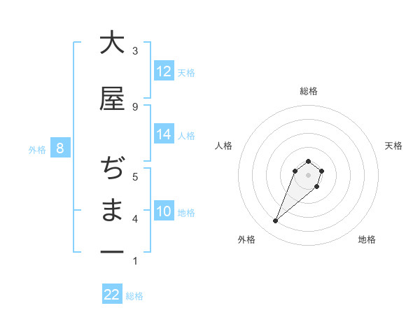 大屋 ぢまーさんの外格は8画の4点!