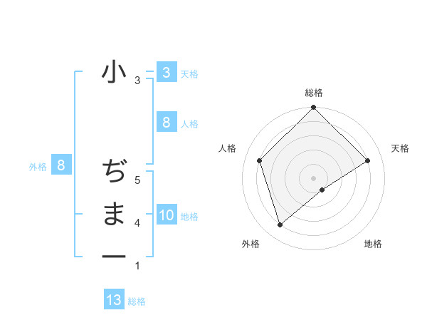 小 ぢまーさんを姓名の画数から五運を鑑定