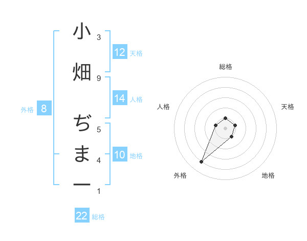 小畑 ぢまーさんを姓名の画数から五運を鑑定