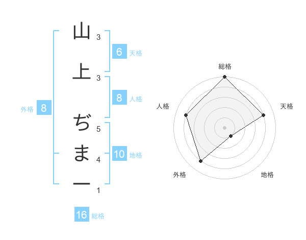 山上 ぢまーさんを姓名の画数から五運を鑑定