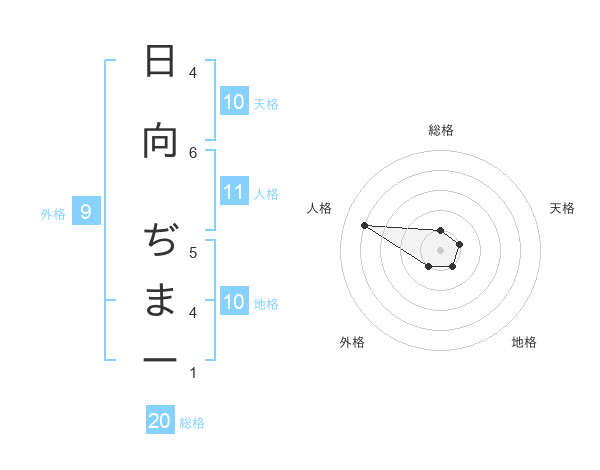 日向 ぢまーさんを姓名の画数から五運を鑑定
