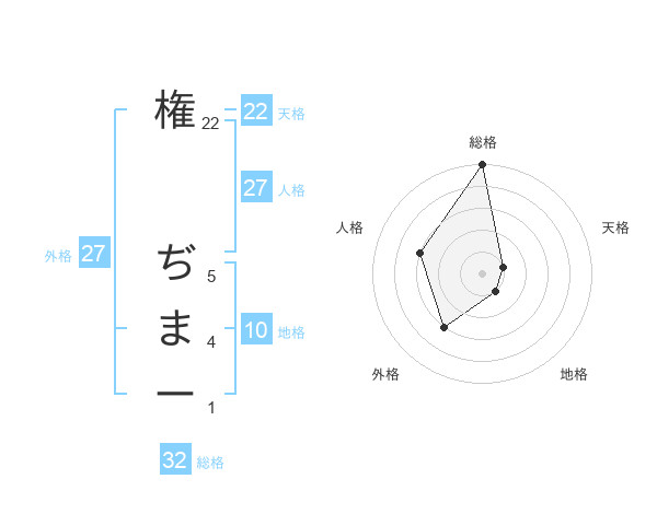 権 ぢまーさんを姓名の画数から五運を鑑定