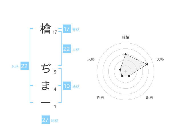 檜 ぢまーさんの総格は27画の3点!