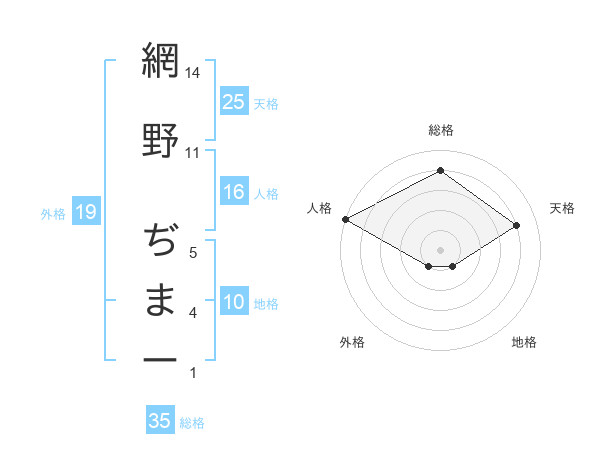 網野 ぢまーさんの天格は25画の4点!