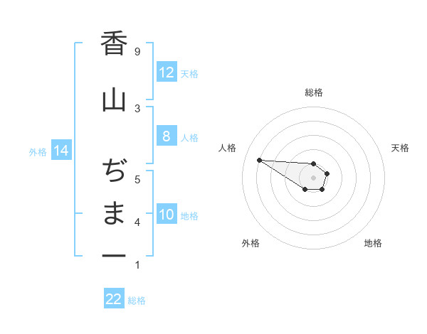 香山 ぢまーさんを姓名の画数から五運を鑑定